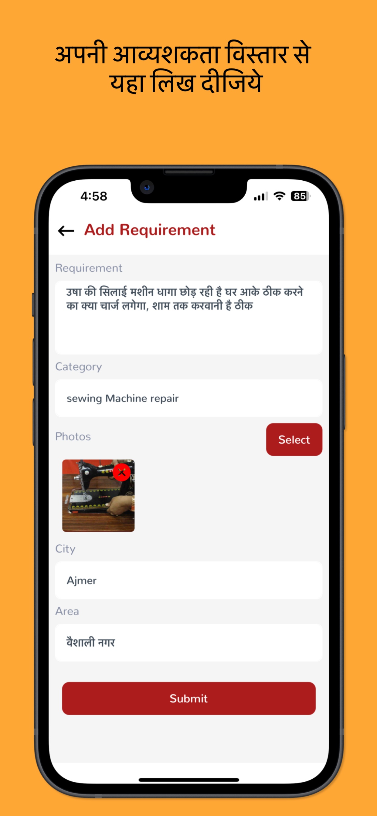 Consumers can add any requirement here, we send it to all the vendors of that category, Vendors who can full fill their demand can further message to the consumer on the app.